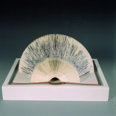Technik: Buch gefaltet; weiß lackierter Holzrahmen mit grau lackierter Schattenfuge